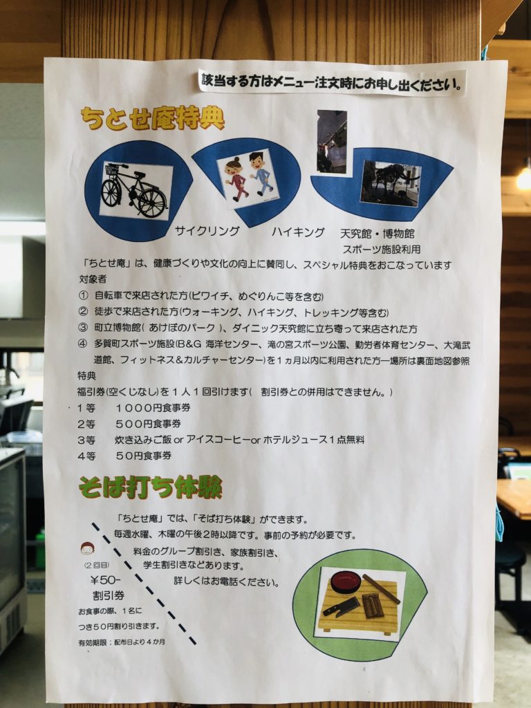 (そば打ち体験のチラシが貼ってあります。)