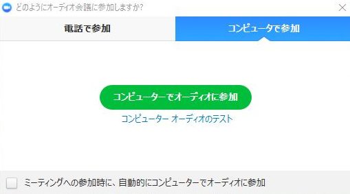 画面の左下にある「ミーティングへの参加時に、自動的にコンピューターでオーディオに参加」に