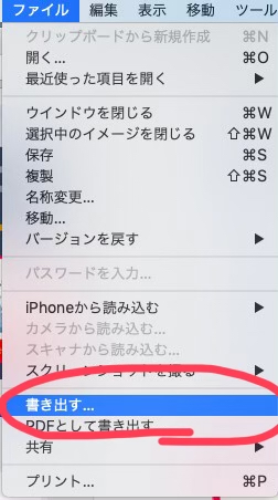 - 「ファイル」→「選択中のイメージを書き出す」をクリック