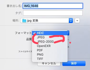 - フォーマットを「JPG」を選んで「保存」をクリック