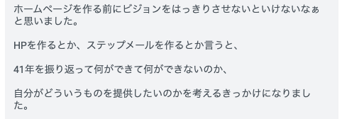 ホームページを作る前にビジョンをはっきりさせないといけないなぁと思いました。