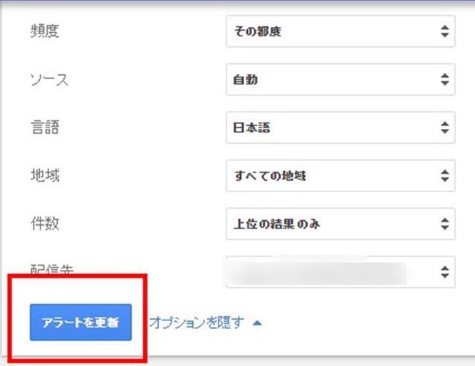 登録キーワードが決まったら、「アラートを作成」をクリックします。