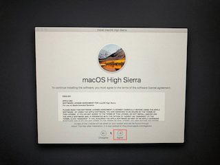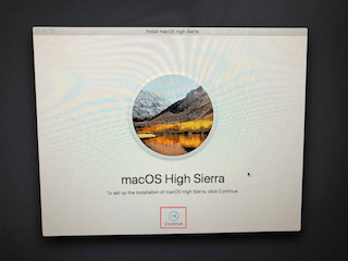 ④「High Sierra」の画面が表示されますので「Continue]をクリックします。