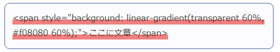 <span style=”background: linear-gradient(transparent 60%, #f08080 60%);”>ここに文章</span>