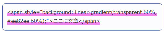 <span style=”background: linear-gradient(transparent 60%, #ee82ee 60%);”>ここに文章</span>