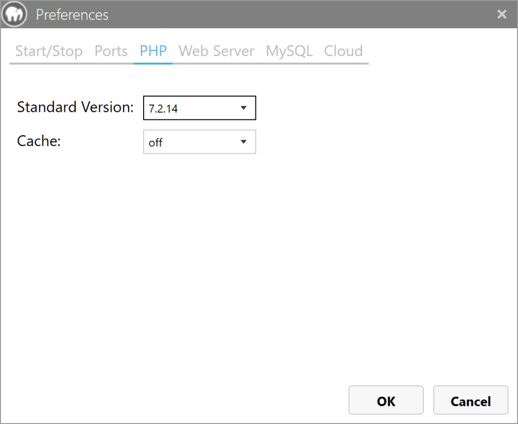 「Standard Version」を、初期設定が、7.3.7から、7.2.14 に変更する。