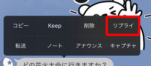 リプライ機能の利用方法は、リプライしたいメッセージを「長押し」し、表示されたメニューから「リプライ」を選択するだけ。