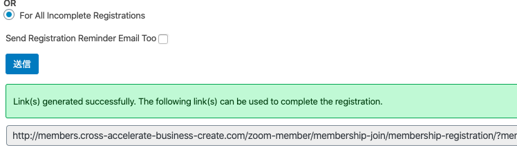 「For All Incomplete Registrations」のボタンを押して、送信ボタンを押します。