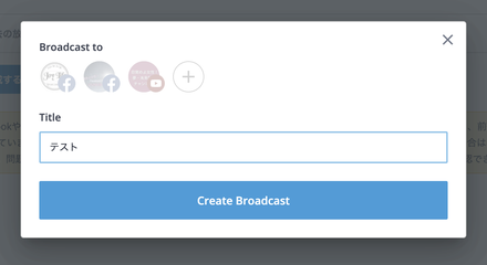 タイトルは記録用なので、「テスト」と記載し、CreateBroardcastをクリックします。