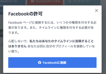 個人ページにログインしたら、接続するFacebookページのリストが表示されます。