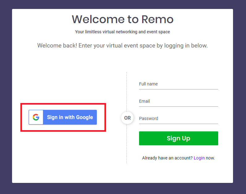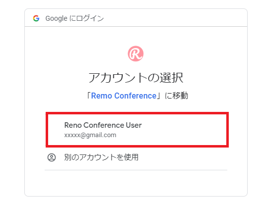 Googleアカウントを選択して、「Remo Conference」に移動してください。