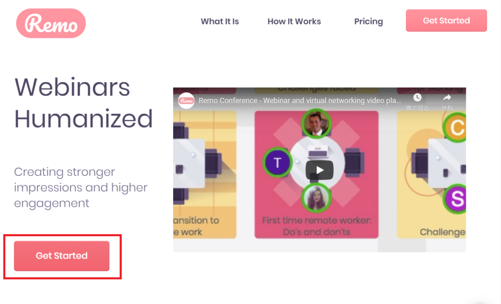 >>Remoの公式サイトはこちら - 「Get Started」をタップする。