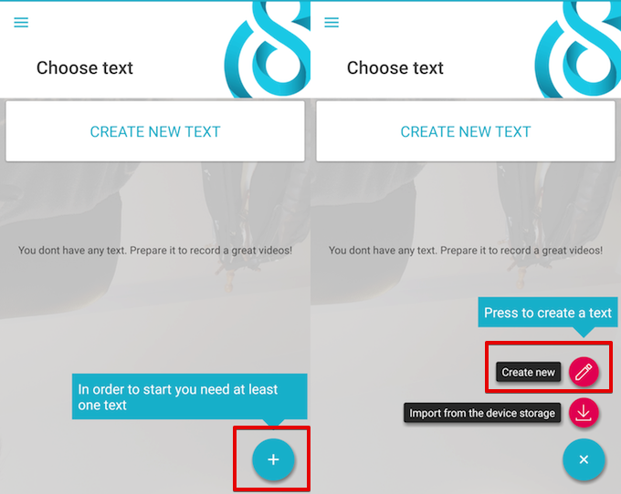右下「+」ボタンから「Create new」をタップし、台本を入力します。