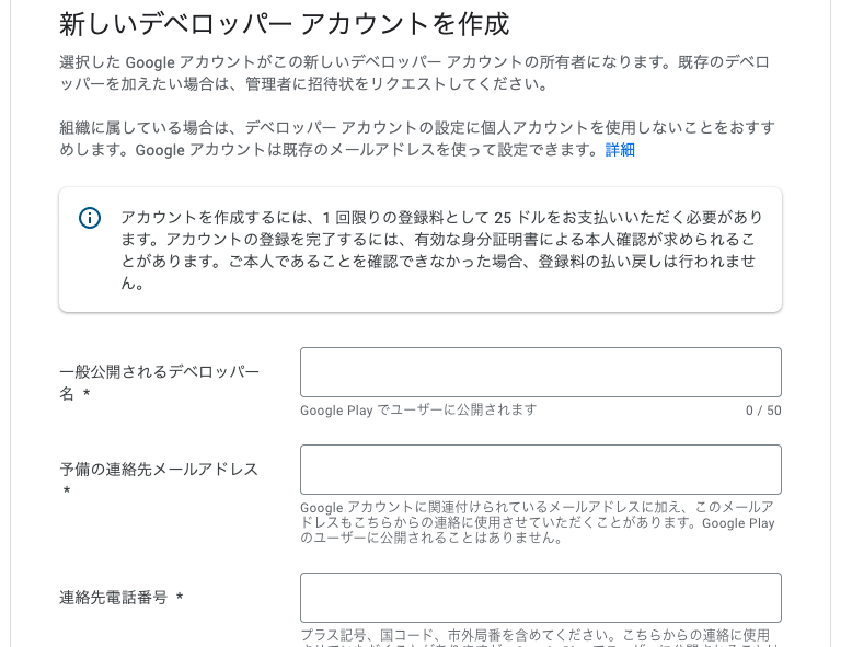 Google Playデベロッパーアカウントの作成手順